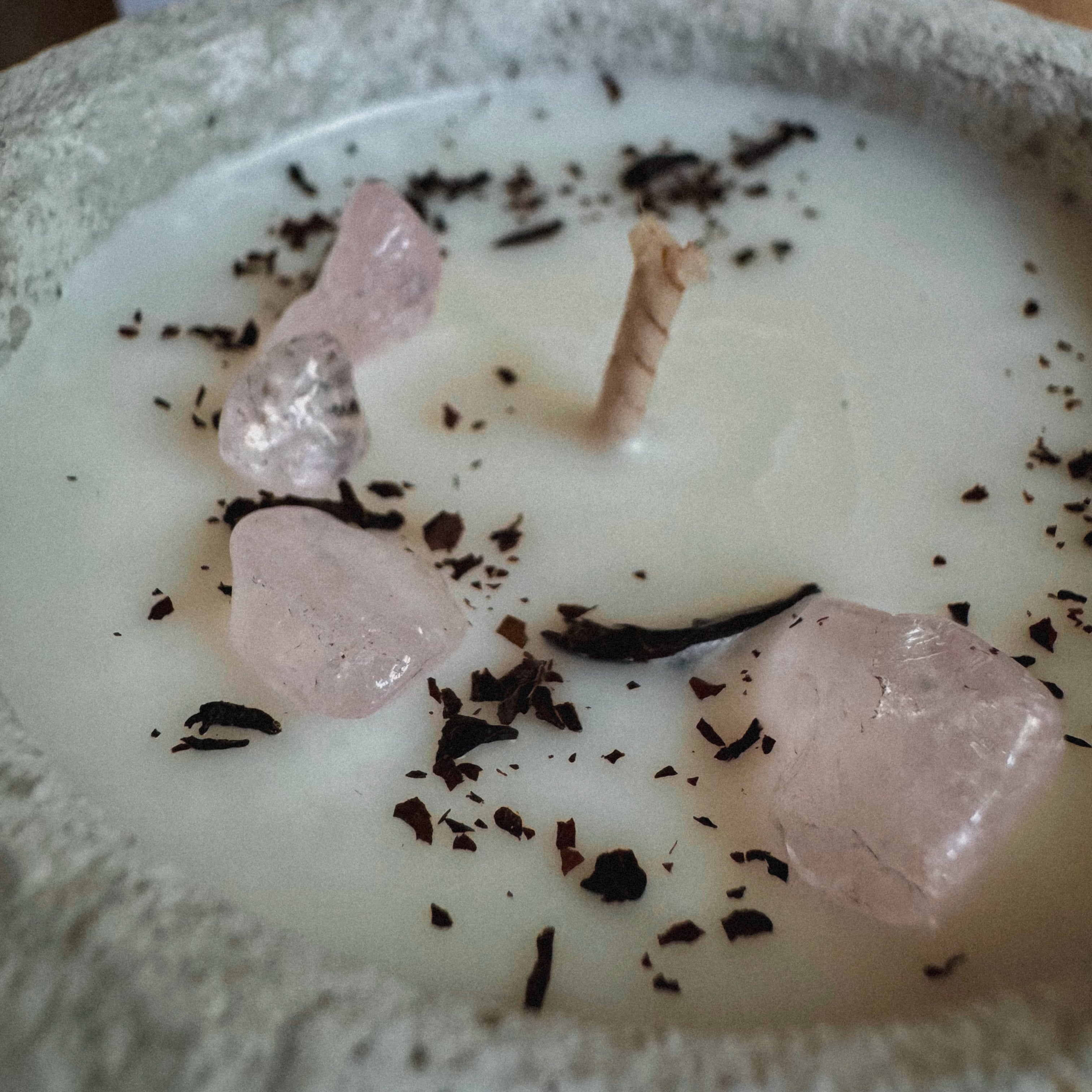 Le note delicate di rosa si fondono con la dolcezza della vaniglia e la freschezza del bergamotto, dando vita a un profumo che calma, consola e riporta al centro.